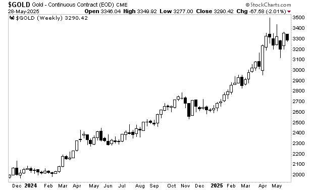 The precious metal is highly sensitive to money printing/ debt levels. And as I write this, gold is near its all-time highs, trading at roughly $3,300 per ounce. Again, if the BBB was going to reduce the debt and cut spending you’d expect this asset to be going in a different direction.