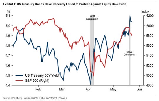 When bonds stop working, the portfolio model must change. The traditional 60/40 equity-bond allocation2 failed twice in recent months—once during tariff-induced recession fears, again as long-term borrowing costs surged on fiscal sustainability concerns. In both cases, U.S. Treasuries failed to offset equity drawdowns.