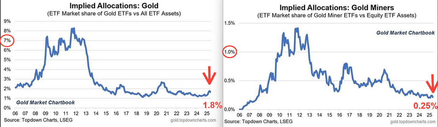 Put another way: Sovereign entities like Central Banks started replacing Bonds with Gold more aggressively when the Ukraine war started. Now, privately held institutions have begun following that lead. This charts below serve as a reminder of how far gold has yet to go in terms of broadening reinvestment.1 We have much more to go in restoring Gold as a proper asset for global financnail health.