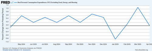 And when you exclude housing from the data, (AKA SuperCore-PCE) month over month the data went NEGATIVE. This is DE-flation, not the inflation the Fed has been prattling on about despite ZERO evidence of its existence.