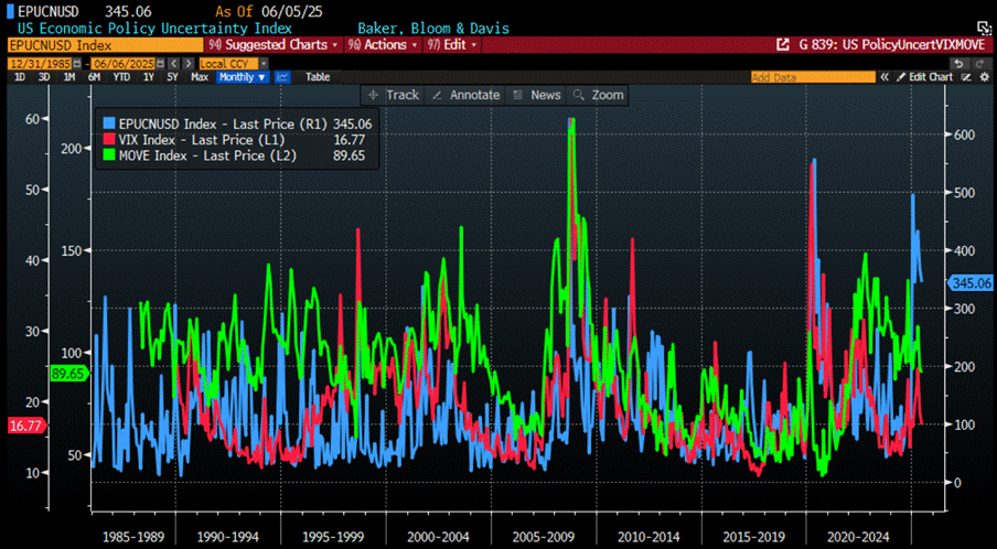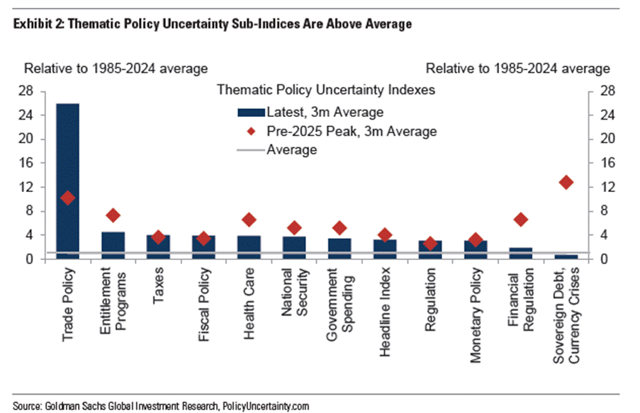 Interestingly, while trade policy uncertainty is off the charts, most other policy-related uncertainty indices are also running hot. Translation: even businesses that don’t import a single widget are in for a wild ride. Uncertainty isn’t just global—it’s gone domestic.