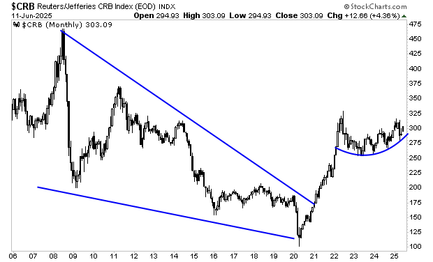 The markets know this too. Take a look at the extremely bullish formation the commodities index is forming.