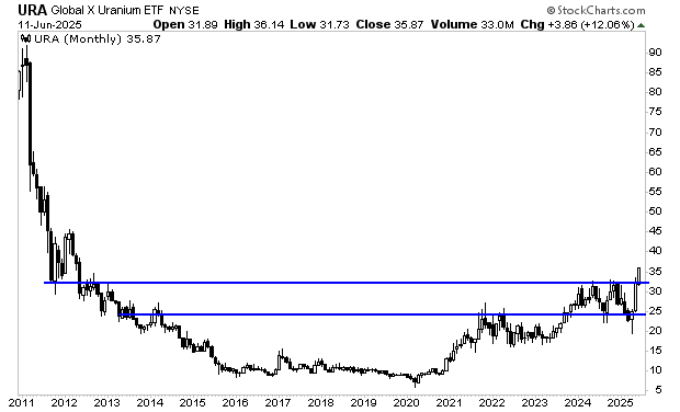 How about uranium? Many AI companies are opting for to meet their energy needs with nuclear fuel. Does this chart look bearish to you?