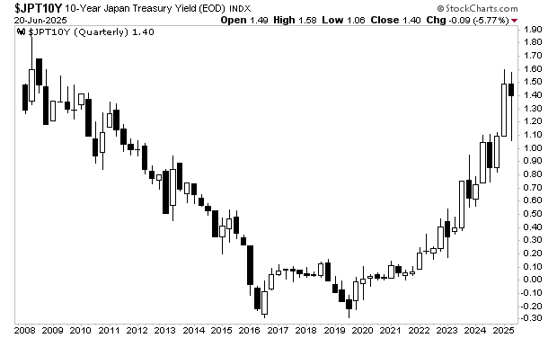As a result of this, the yield on Japanese Government Bonds have exploded higher to levels not seen since 2008.
