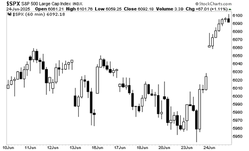 Ever since the strikes between Israel and Iran began in earnest on June 12th 2025, I’ve noted repeatedly that the markets were signaling that this conflict would A) not last long and B) have minimal impact on the global economy/ financial markets.