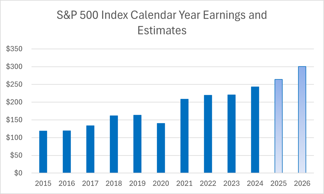 Now layer in earnings expectations: $264 for 2025 and over $300 for 2026. That gives us a 12–18 month upside target of 6,700 to 6,861—roughly 10% from here. And that's if numbers don't rise.