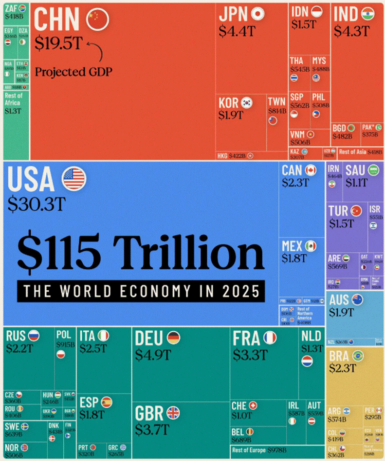 But here’s the strategic reality: while the U.S. commands roughly 24–25% of global GDP, it’s just one force among 195. China holds the second front with 17–18%, backed by its manufacturing arsenal. Japan, Germany, and India follow as key economic brigades, each controlling 3–5% of global output. The rest of the top 10—UK, France, Brazil, Italy, and Canada—hold the line with 1.5–3% each.
