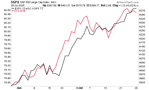 First and foremost, high yield credit which typically leads stocks (note how the red line led the black line during this recent rally) has already begun to roll over.