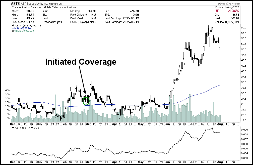 AST SpaceMobile is starting to get a lot of buzz on the internet. Still strong. We initiated our coverage in February.