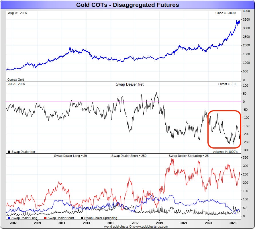 Here you can see the picture in the gold market, where the banks are currently short 211,000 contracts.