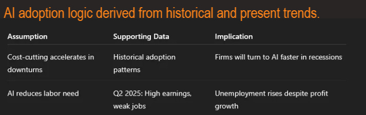 Historically, when revenue growth slows, companies turn to operational efficiency to preserve margins. Adoption of automation, outsourcing, and process optimization tends to accelerate during these phases. AI is the most recent and most powerful tool in that toolkit.Goldman expects 6–7% of workers displaced by AI