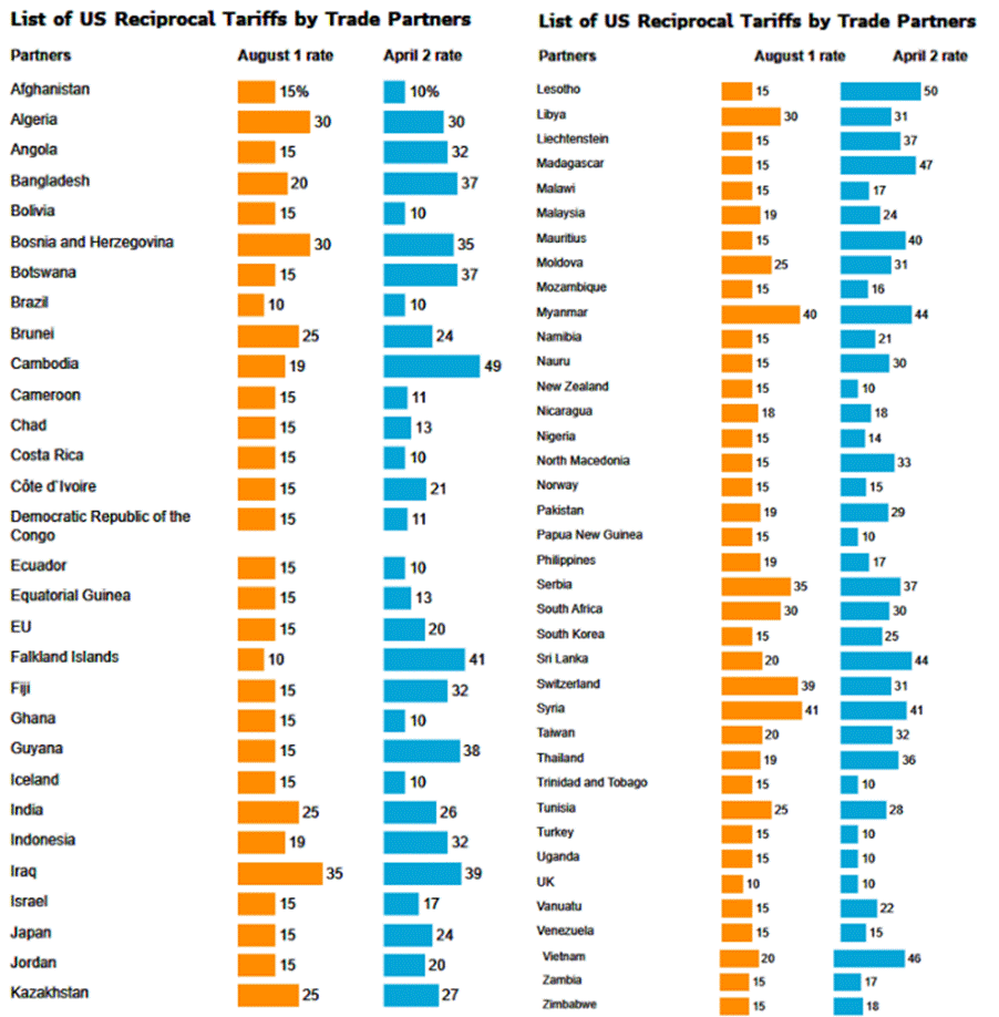 On August 7th, Donald Copperfield waved his magic tariff wand once again, proving tariffs aren’t just economic tools anymore—they’re geopolitical weapons aimed at BRICS and anyone daring to say “no thanks” to ‘Trumperialism’. Apparently, the Washington swamp’s favourite pastime remains spreading chaos under the guise of a Malthusian depopulation agenda, all while slapping new tariffs on the globe. Starting August 8th at midnight ET, planet earth braced itself for a 10% global minimum tariff on imports. Canada’s tariff jumped from 25% to 35%—unless you’re playing nice under USMCA. Switzerland got hit harder, up to 39%, causing some diplomatic huffing. Meanwhile, 40 countries got a 15% slap, a dozen-plus economies faced even nastier hikes, and China and Mexico got a 90-day stay of execution. Tariffs: the world’s new favourite geopolitical toy.