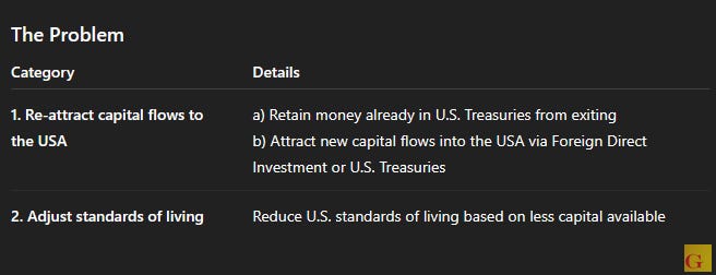If the United States can no longer attract sufficient foreign capital into its bond market, the ability to subsidize spending and investment comes under direct threat. Without new inflows, policymakers are left with limited choices. This Problem stated as an Either/Or proposal: