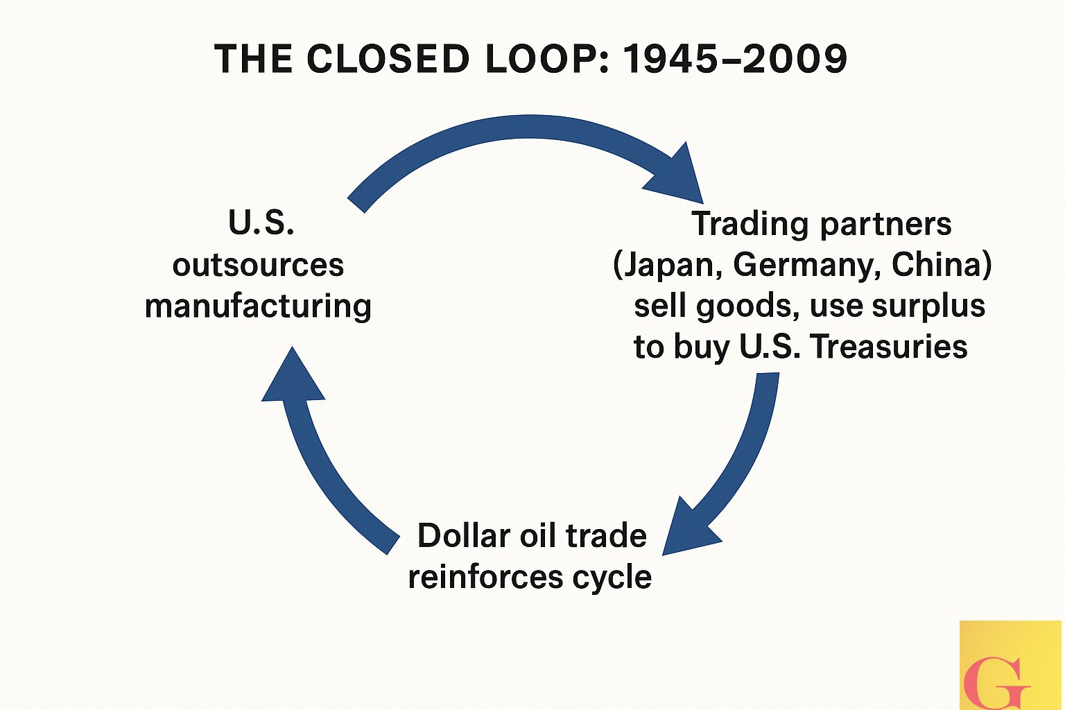 After World War II, the United States created a closed loop with its trading partners. American manufacturing dominated initially, but as the country lost competitiveness due to higher domestic SOL and labor costs, production was outsourced abroad. The nations that received outsourced manufacturing (Japan, Germany etc) sold goods back to the U.S., and in return, they purchased U.S. Treasuries. As their Stanndards ofliving rose, other nations became the manufacturing bases (Korea, Taiwan etc). The system was reinforced by the dollar’s role as the currency of oil trade. China became the most notable participant in this model after Nixon’s deal with Mao leading to it eventually being integrated into the global economy as its biggest manufacturer, and a buyer of US Bonds. Now they want to renegotiate that deal. We need a new buyer of our debt who will loan us the money we’ve become accustom to borrowing. But…