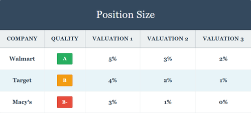 The quality rating and valuation system is a cornerstone of our portfolio construction. The higher the quality of the company and the more undervalued it is, the larger its position is going to be. This makes perfect sense since higher quality reduces risk and significant undervaluation leads to higher returns.