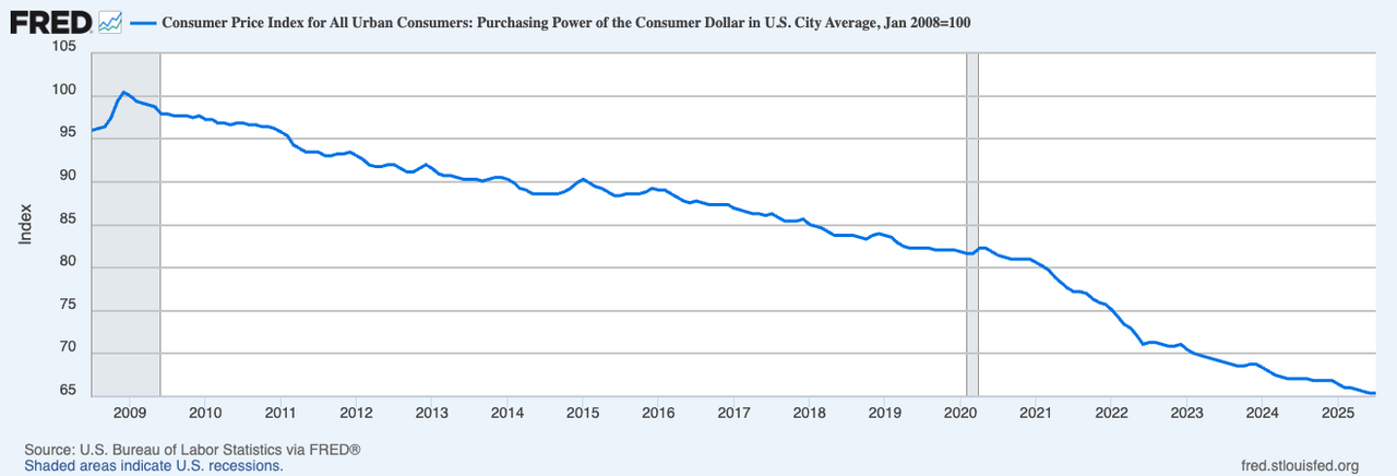See for yourself… Since the Fed embarked on its campaign to reflate the financial system after the Great Financial Crisis, the $USD has lost over a THIRD of its purchasing power.