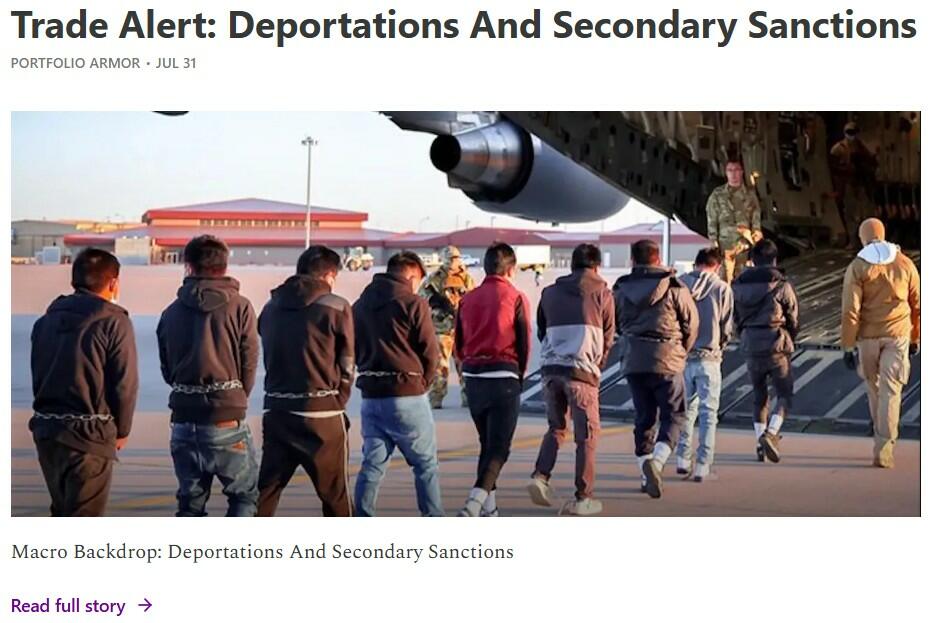 Of course, increasing government revenues is only one half of the fiscal equation. The other half is reducing spending. The Trump administration has two levers here, one it has already started pulling on: mass deportations of illegal aliens. Illegal aliens consume more in government resources than they pay in taxes, so, all else equal, removing them should lower government spending over time. And deportation flights have hit record numbers this summer. We recently opened a trade designed to profit from these deportations: