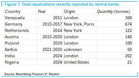 For countries outside the G7, the episode reinforced gold’s neutrality. Recent repatriations of reserves highlight this risk-averse trend (Figure 7).