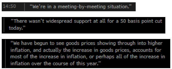 Powell’s opening remarks leaned noticeably more dovish than last September, when the Fed — under election-year pressure — went for a hefty 50bps cut. This time, the tone was softer, the move smaller, and the political subtext just as hard to miss.