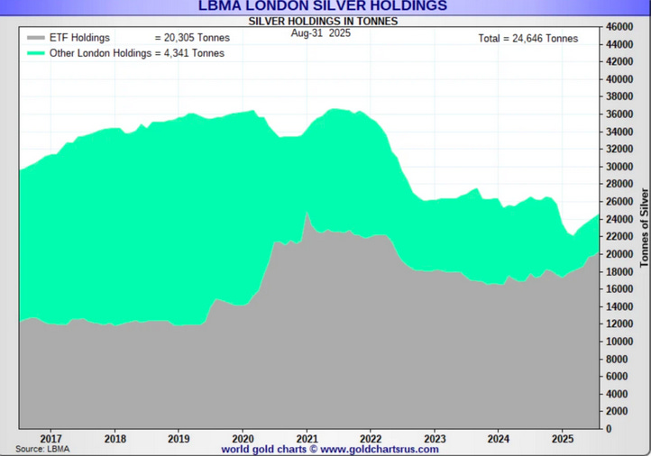 It’s hard to overstate the impact of Daniel Ghali’s recent report stating that at the current pace of ETF additions, the LBMA is 7 months away from a supply crisis, and at the historic rate of additions during a cutting cycle, that could be as low as 4 months. This week he was out discussing that on Bloomberg, which means this is also what the institutional investing audience is seeing and hearing now.