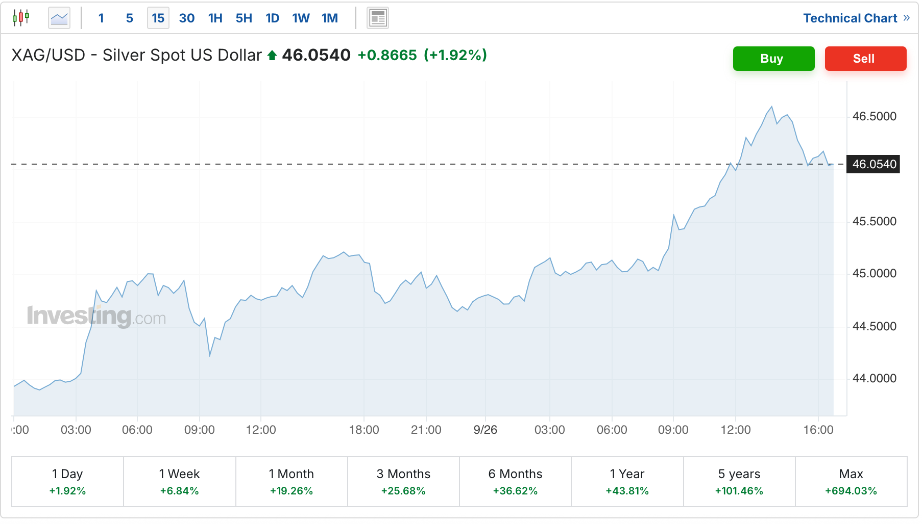 Silver Surges Over $46 Mark On LBMA Supply Tightness