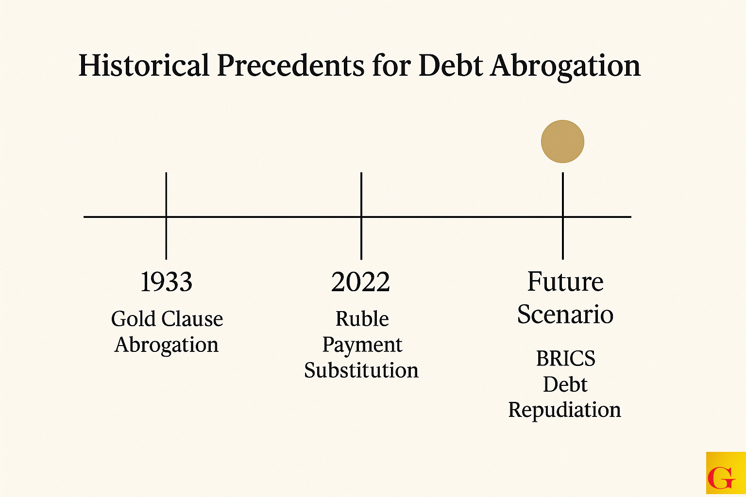In practice, for a modern challenge to succeed, BRICS nations would need to act collectively. A single country repudiating its debt would be isolated and punished. If a coalition of major economies acted in unison, the dynamics would change. The U.S., which controls much of the global dollar payment network through which these nations service their obligations, would face accusations of restraint of trade if it restricted access. Such restrictions would directly undermine those nations’ ability to repay, lending credibility to classifying the affected obligations as “odious.”