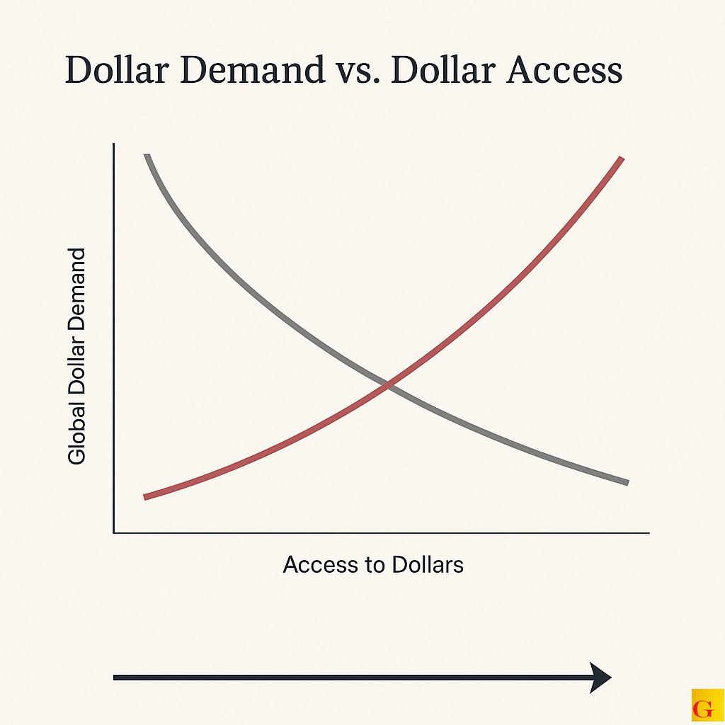 When the U.S. imposes sanctions (blocking financial flows) and tariffs (restricting exports to the U.S.) against other nations, those countries’ ability to earn dollars through trade or capital inflows is restricted. Because most emerging-market debt is denominated in dollars, maintaining the capacity to service that debt depends on a steady inflow of dollar revenue.