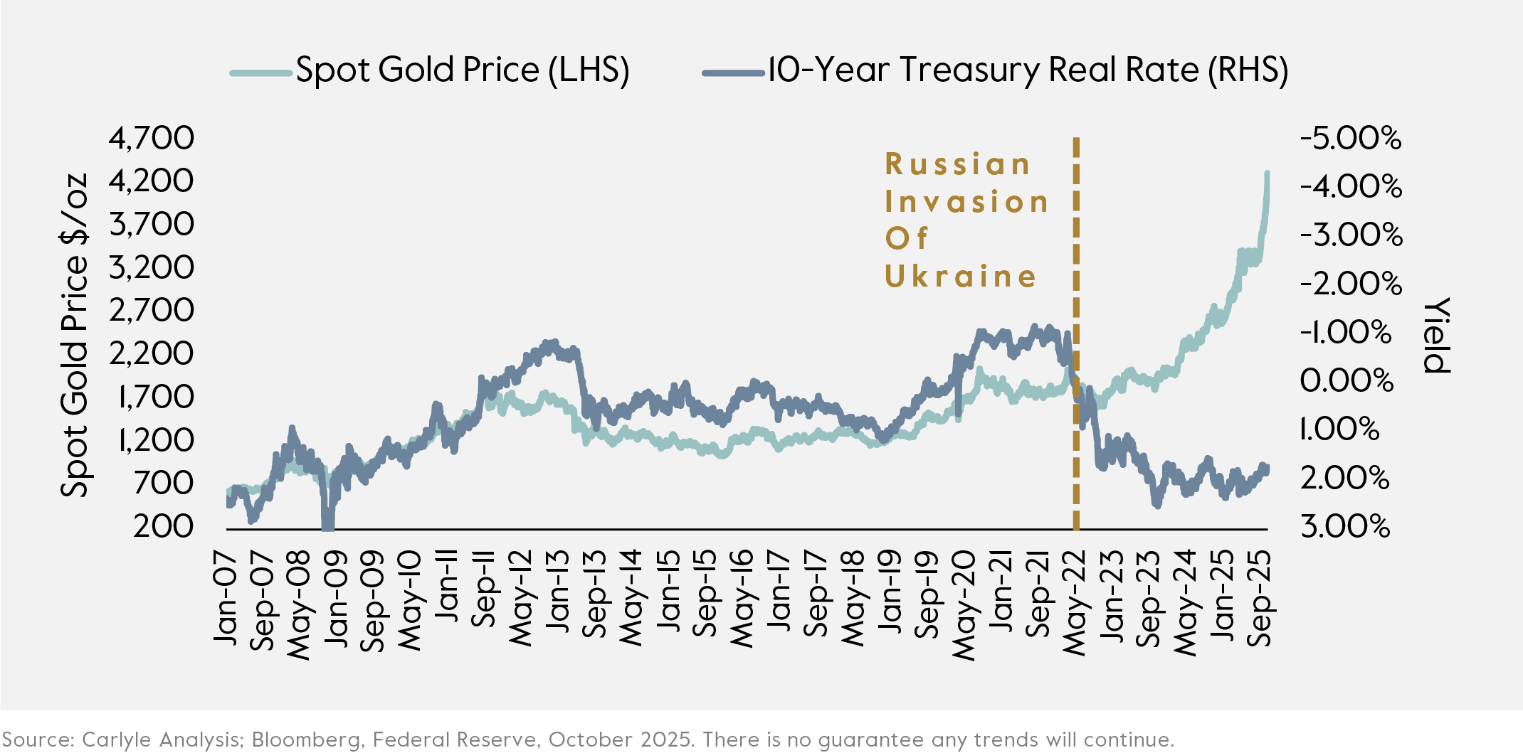Exhibit 1: Decoupling Between Gold Prices and Real Rates Coincided with Sanctions Imposed on the Russian Federation in Response to the Invasion of Ukraine