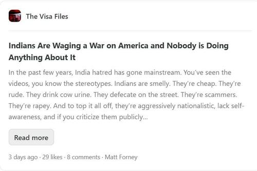 The mention of the Patel clan’s domination of motels is significant also because it’s one of the few publicized cases of Indian corruption in American social and economic life. But the reason for the unique publicity here is even worse: the Patels are from Gujarat, and Gujaratis are widely resented by Indians from other parts of India as a mercantile caste. That you (may) know about the Patel fraud as opposed to other fraud in other parts of the economy associated with Indians is also because the Patels are especially singled out by other Indians out of old-world clan and ethnic rivalries that have been imported to America. In this connection liberal Jews should also be aware of the great resentment that Indians often have for them as potential “high verbal IQ” competitors. I am reliably informed that Indian and Pakistani executives from the tech world were endlessly sharing explicitly antisemitic content in certain chats in the lead-up to the 2024 election. The reasons why should be obvious.