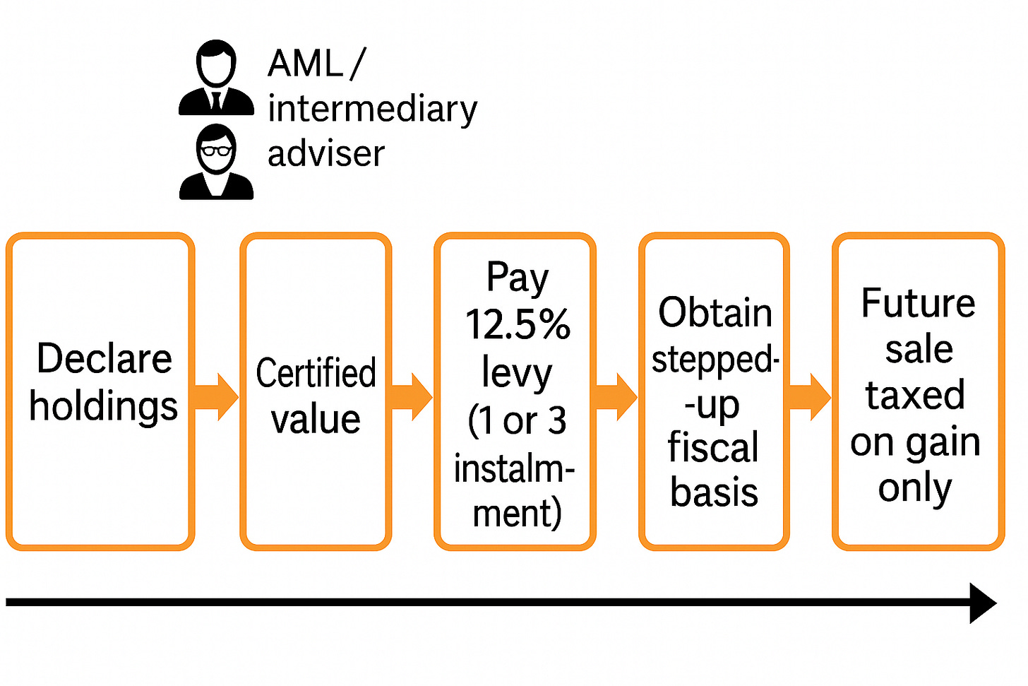 If approved, the measure would allow taxpayers to pay the levy in one or three installments. Certified holdings would be granted a new fiscal value for future sales, and transactions would be conducted through authorized intermediaries under strict anti–money laundering checks.