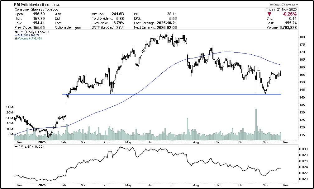 Philip Morris has a great risk reward at $142.