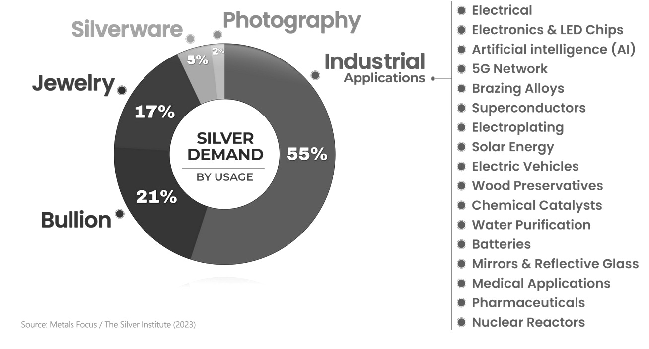 UBS projects global silver demand to rise modestly to approximately 1.34 billion ounces in 2026 from 1.33 billion ounces this year. Incremental growth is concentrated in electrical and electronics applications, while photovoltaic demand is expected to remain stable near 190–195 million ounces annually. Additional tailwinds may emerge from expanding data-center construction driven by artificial intelligence infrastructure spending and from automotive electrification trends.