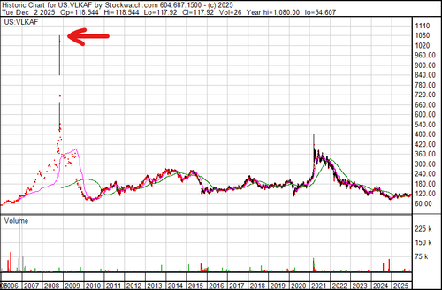 This shows what happens when a real short squeeze happens. Here, Volkswagen, AG (the German car company) got hit in a massive short squeeze back in 2008 when speculators betting on the outcome of a complex merger between Porsche and Volkswagen built up huge short positions in Volkswagen, offset by long positions in Porsche. Because the delivery mechanics shifted mid-stream, the short sellers were caught when their easy-to-borrow shares suddenly became impossible to borrow, forcing them to go into the market and buy in all of the shares to cover their short position. Who was selling the shares to them? The usual group of famous (and ruthless) investment banks. What price can they charge? Whatever they want. In this case, the 60- shares ended up spiking to 1100- overnight with no chance to cover at a modest loss. Needless to say, this blew out a lot of merger arbitrage funds and follow on speculators hoping to profit from a return to normal.