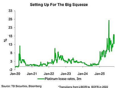 If the shorts are comfortable paying monthly backwardation costs for a while, they could wait this out despite our own biases. But if they are not able to, (if China and Indian buyers do not remain patient) Ghali may be early in his call of the Silver squeeze demise. Finally, the market knows there is a Silver deficit now. It does not seem to be looking at the aforementioned PGM risk. So Ghali’s points are well taken. Platinum may be where the puck goes to next borrowing Wayne Gretzky’s analogy. but after LBMA proves it is solvent again beyond its self-inflicted damage.