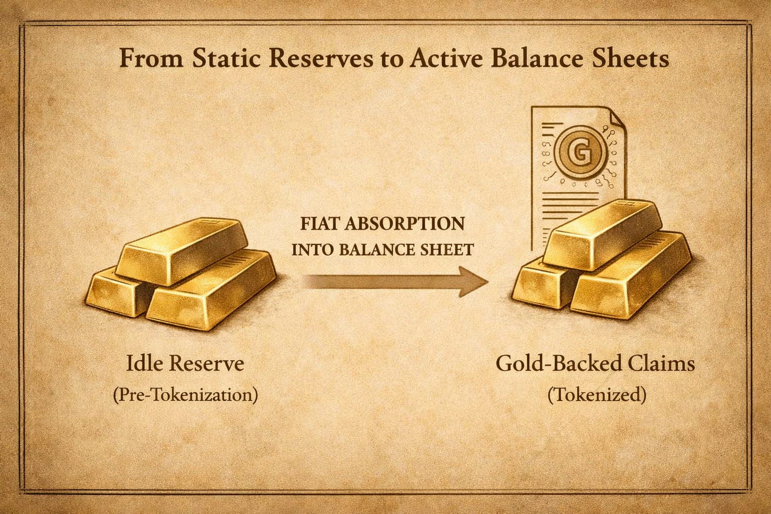 At the balance-sheet level, fiat exchanged for gold claims represents debt reduction. Currency is retired rather than rolled forward.