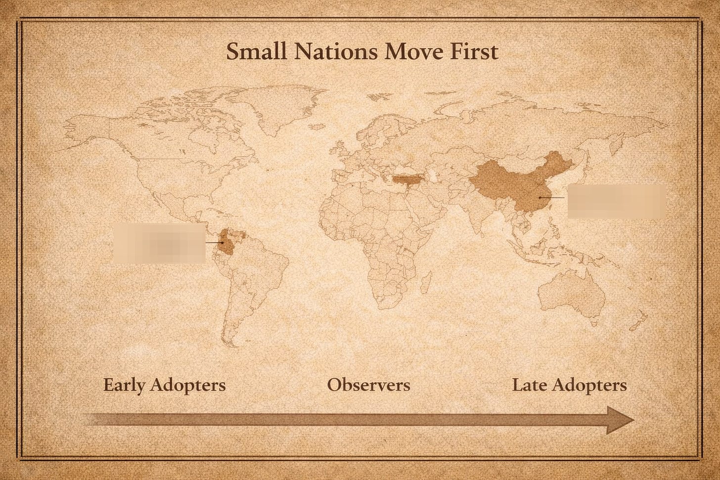 Smaller nations tend to move first because necessity compresses decision-making. Larger nations tend to observe, evaluate outcomes, and adopt later.