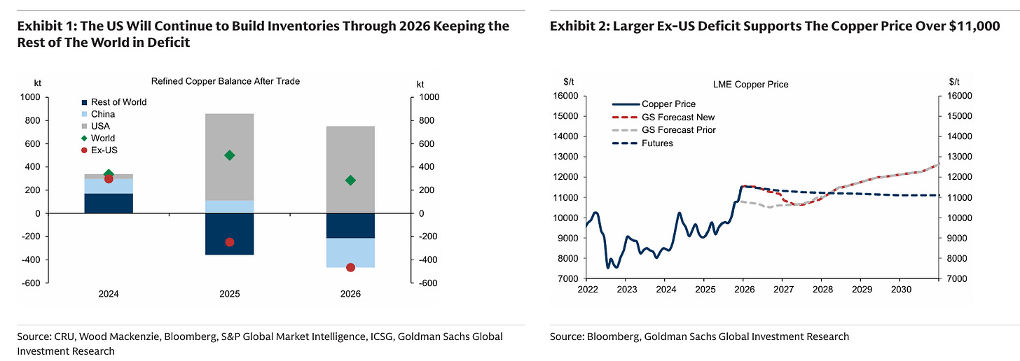 Copper provides a reference case. The United States refrained from aggressive tariff action until domestic availability and downstream capacity improves. Once those conditions are met, tariffs will become a tool to raise global prices, disadvantage competitors, and reinforce domestic supply chains. Now Goldman discuses openly the hoarding and a future US tariff being implemented. Silver increasingly fits this template. Accumulation precedes restriction. Tariffs follow sufficiency.