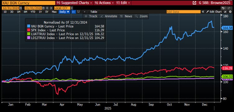 It is that magical time of the year when investors turn into historians of the last 12 months and prophets for the next 12—armed with conviction, confidence, and a remarkably short memory. This time last year, the consensus was clear: equities were destined for a nap, gold was a relic, and the future belonged to phantasmagorical digital assets powered by vibes, narratives, and unlimited PowerPoint slides.