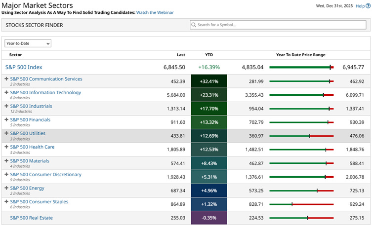 https://www.barchart.com/stocks/sectors/rankings?timeFrame=Ytd