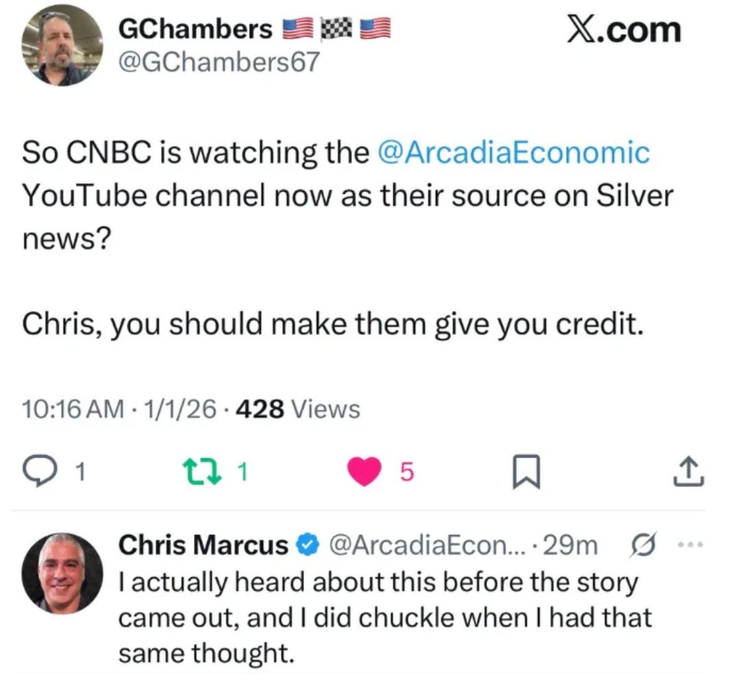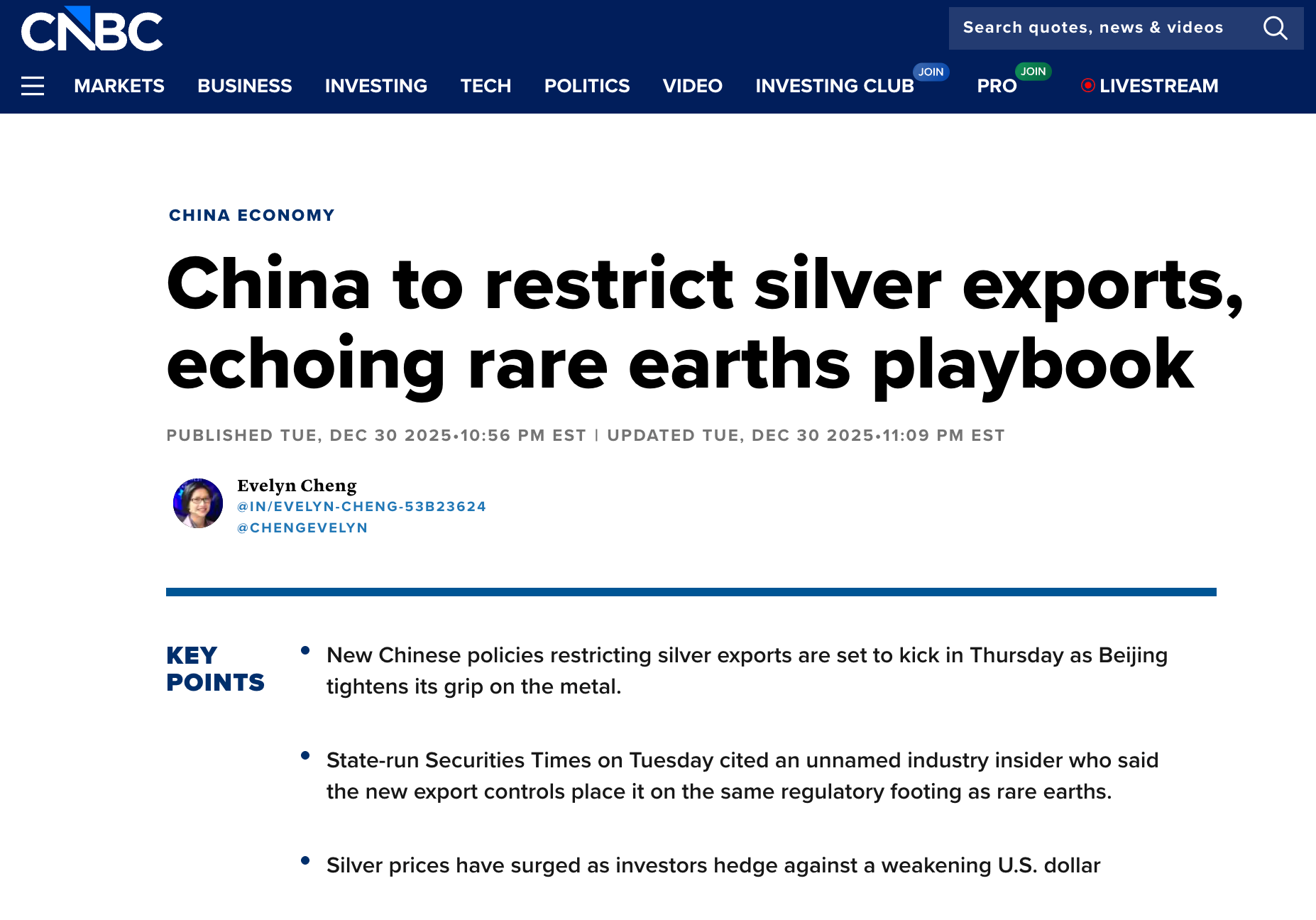 The second item that will be at the top of the list of things I’m watching going into 2026 is what happens to the arbitrage that’s currently on the board. Especially with the rather unique situation that currently exists in the U.S. retail market, where dealers are paying anywhere from $3 to $10 under spot price when people go to sell back their silver, that’s resulted in a bottleneck at the refineries, at the same time that China, India, and who knows where else is willing to pay an $8 to $10 premium.