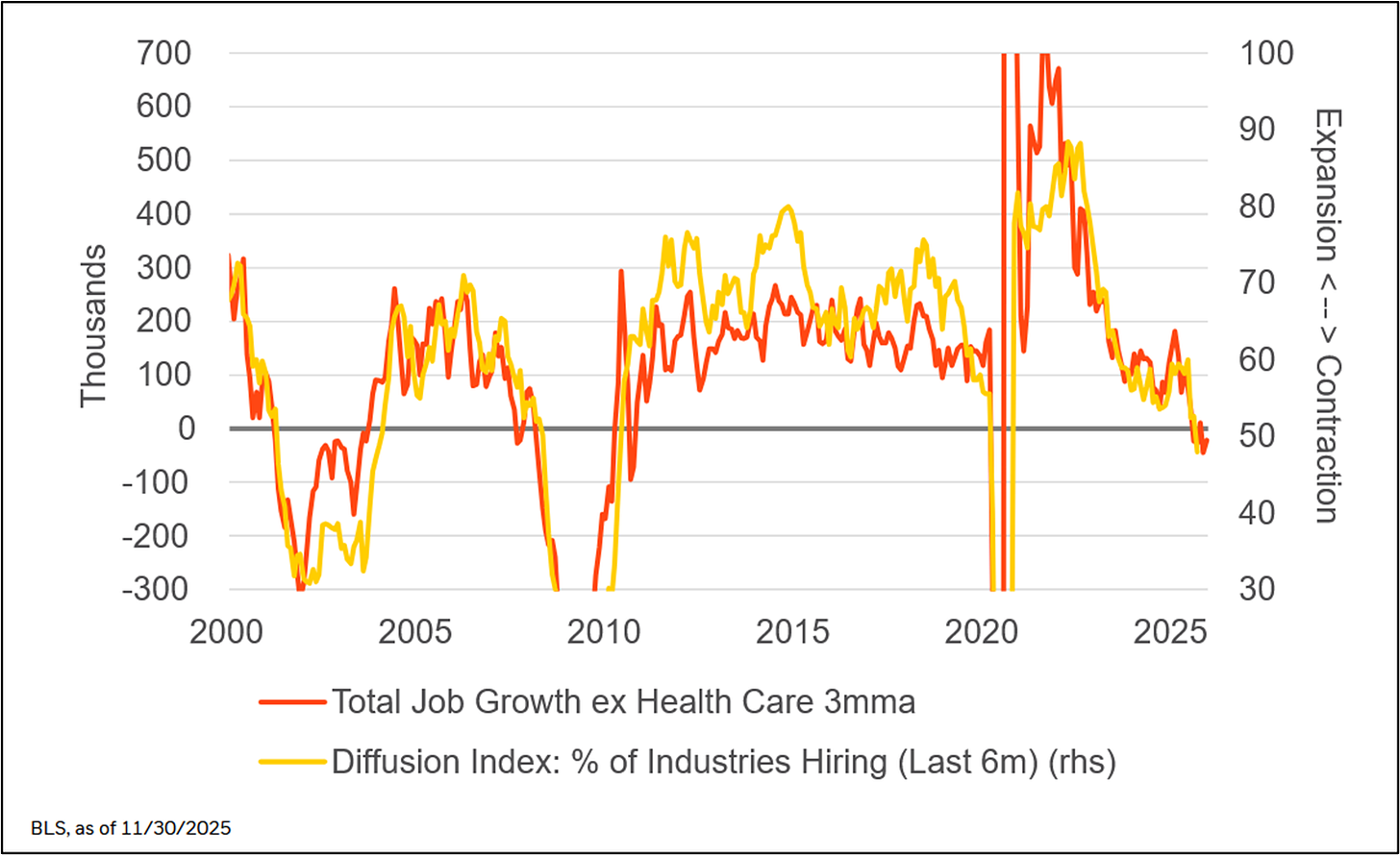 Labor now represents roughly 55% of total business-sector costs. If AI reduces that share by even 5% (which isn’t a lot)— The present value of those cash flows is enormous. This sets up an event in the labor market that is not typical of a regular cycle.