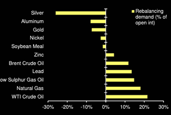 The mechanics are straightforward. Commodities that have outperformed are trimmed. Capital is rotated into laggards. This year, silver and gold are sold. Oil and natural gas are bought.