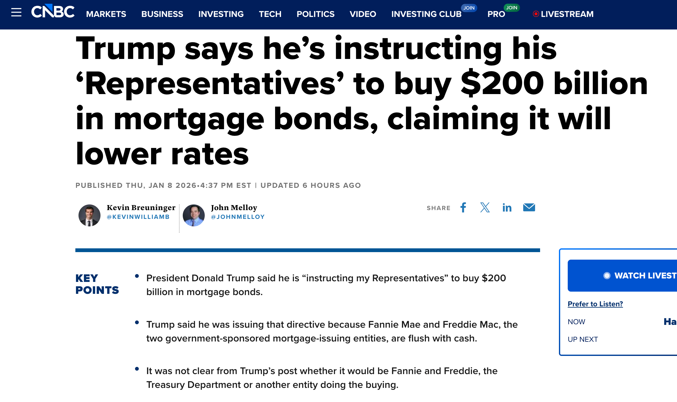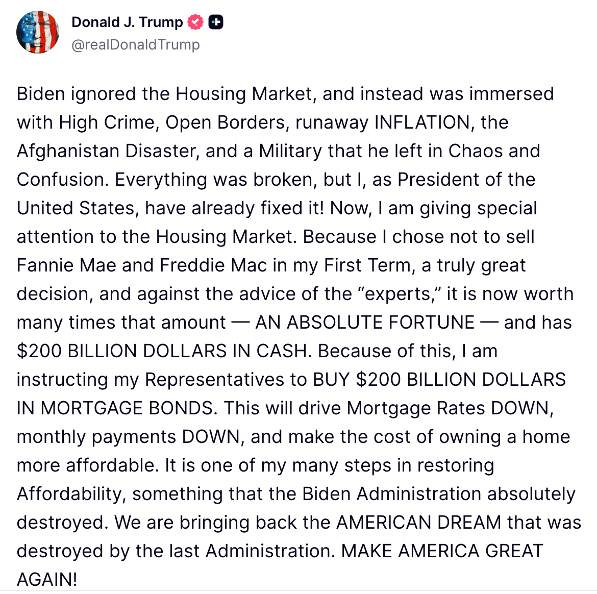 I maintain my belief that the futures pricing is a bit behind the curve here given that Trump is now another month closer to having his new Fed chair in office. Although we did get news on Thursday of another market-impacting decision by the Trump administration, as they announced that they’re going to be buying $200 billion worth of mortgage bonds in order to get mortgage rates lower.