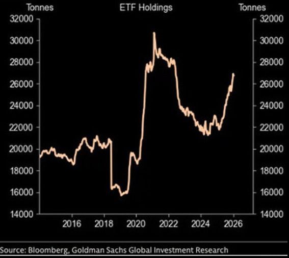 Despite the historic rally, the analysts argue that positioning does not yet reflect a saturated trade. ETF holdings remain below their 2021 peak. Managed money positioning on COMEX remains below historical averages.