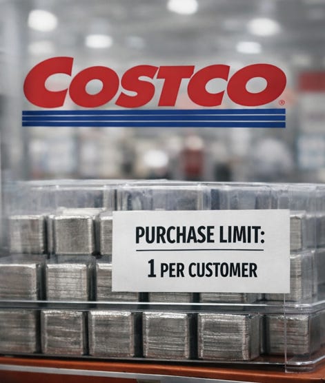 Costco is not facing a silver shortage.. at least not yet that they are admitting publicly. Instead, it has tightened purchase mechanics, limiting transaction size while allowing up to ten transactions per day. The adjustment reflects rapid price increases that have outpaced Costco’s ability to reprice inventory in real time, leaving the retailer exposed to margin compression rather than supply depletion.