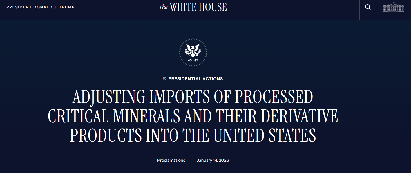 GFN – WASHINGTON, Jan. 15, 2026 — President Donald J. Trump signed a presidential proclamation directing the U.S. government to negotiate adjustments to imports of processed critical minerals and their derivative products, a move aimed at reducing strategic vulnerabilities in America’s supply chains and shoring up national security.