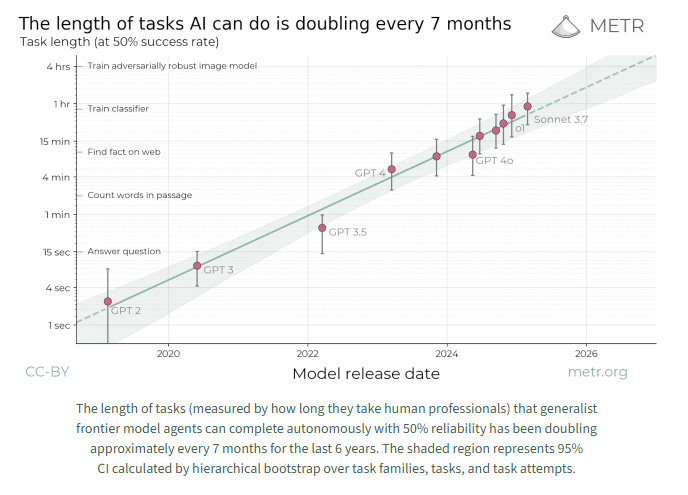 The length of tasks AI can do is doubling every 7 months: