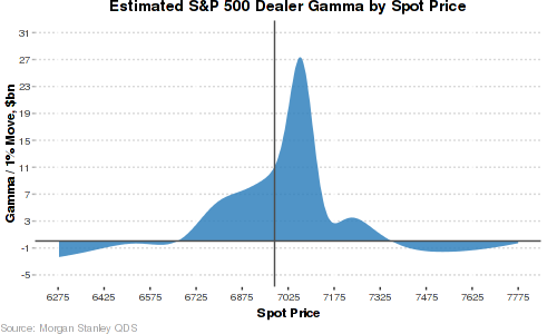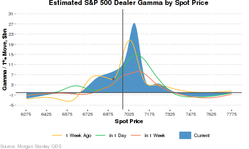 Taking everything explained so far, the setup reflects a fragile market (no shit). MS reflecting dealer gamma offers the strongest defense near current spot (mid-6900s to low-7000s, check charts below), likely containing realized vol, supporting dip-buying, and favoring range-bound or mean-reverting behavior absent fresh catalysts. Leveraged ETF flows represent immediate downside pressure (especially tech-concentrated), while systematic supply looms as a lagged accelerator.