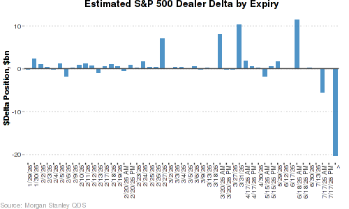 Morgan Stanley’s Quantitative Derivatives Strategy team frames the current S&P 500 dynamics as a fragile balance between stabilizing dealer gamma flows and escalating mechanical supply pressures. MS is blaming much of flows to Microsoft re-igniting ROI fears following their recent earnings report, but I’ll leave it to the comments to argue about including Reuters and Copper in there too.
