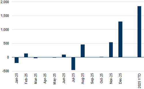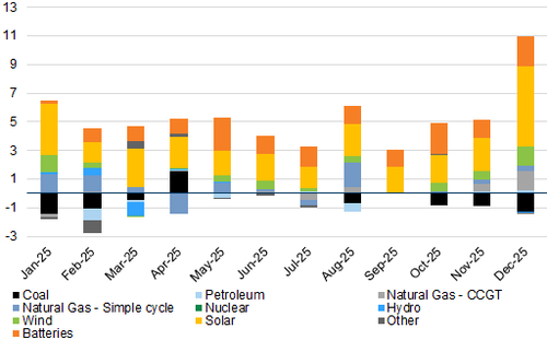 Net generation capacity additions totaled ~50GW in 2025, representing 80% of our estimates for 2025. Notably, ~1.3 GW of CCGT capacity got added in December, and CCGT capacity adds surpassed our estimates for the year, totaling 1.8 GW vs our 1.1 GW.